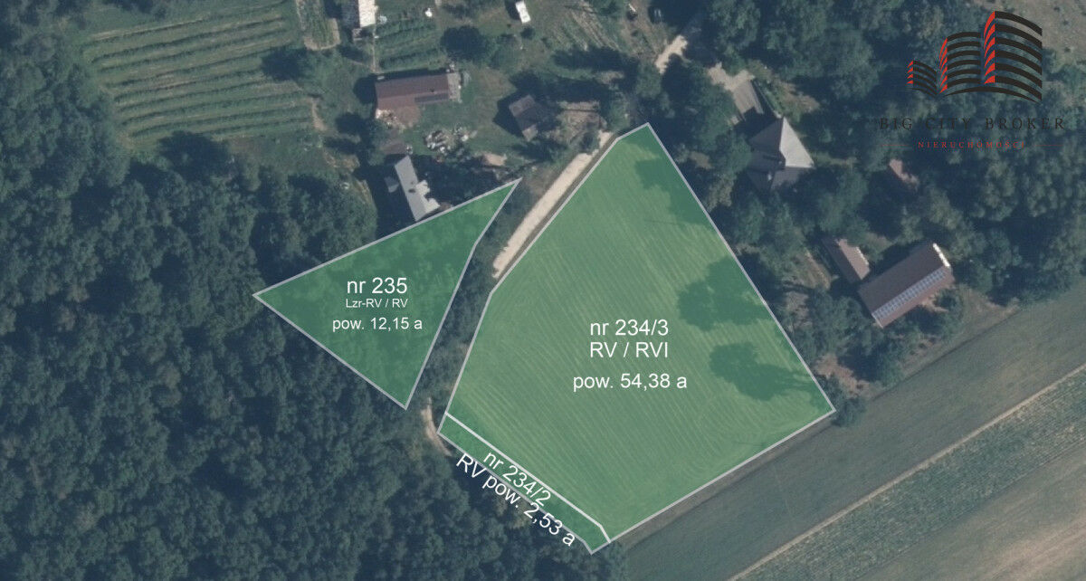 Oznaczenie: LZR-RV i RV, grunty zalesione i zakrzewione